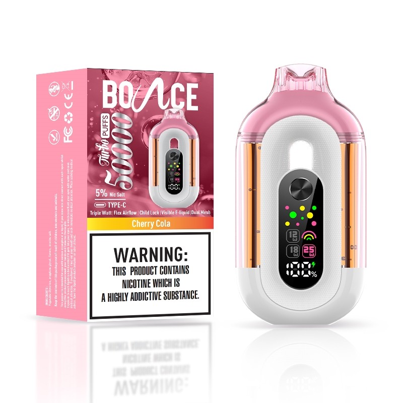 The Bounce Turbo 50K sets a new standard for disposable vapes. It’s designed for users who refuse to compromise on either longevity or control. Celebrated for integrating features previously exclusive to full box mods, this device allows users to tailor their experience with three output power levelsup to 25W, providing everything from a mellow, flavor-focused session to dense vapor clouds. The inclusion of a large digital display and a transparent e-juice pod further enhances the user experience by providing critical data. Overall, this device is the ideal upgrade for heavy vapers who demand premium features and total control in a convenient, throwaway vape kit.