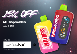 Get exclusive 15% off all disposables at VaporDNA . Use coupon code DEAL15 at checkout