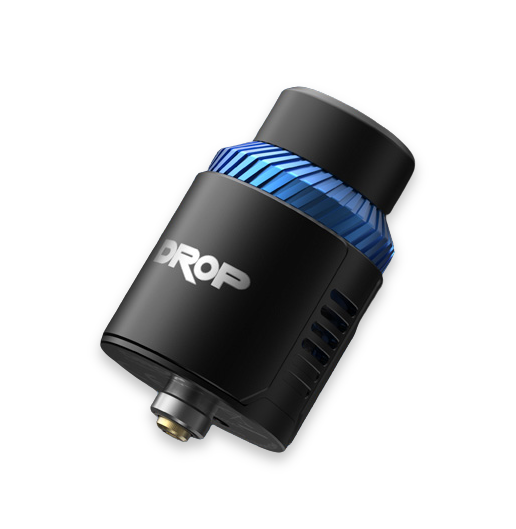 The Digiflavor DROP RDA measures 24mm x 45mm, weighs 56g, and is available in black, blue, frosted black, golden, gunmetal, and silver colors. With purchase, you’ll receive a standard 510 pin, a BF squonk pin, two different 810 drip tips, and a 510 adapter to use your drip tips.
