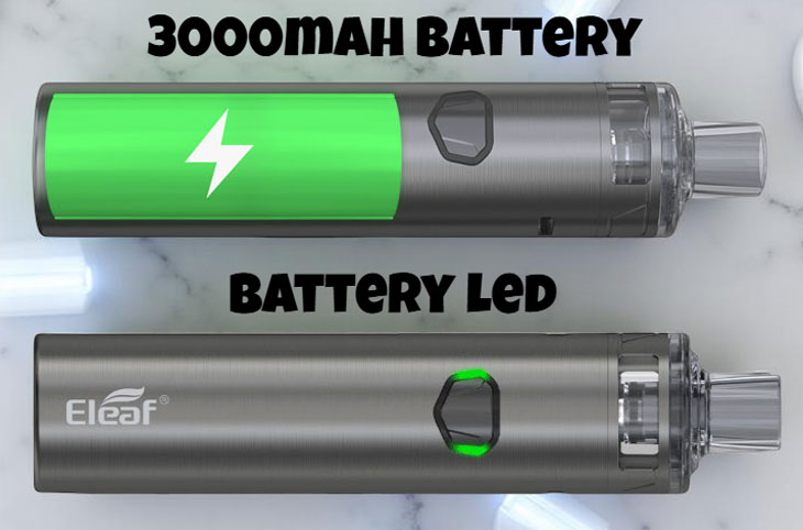 The Eleaf iJust AIO is built around a massive 3000mAh integrated battery, providing exceptional longevity for uninterrupted use. Your power level is always clear at a glance, thanks to the intuitive LED battery indicator surrounding the fire button, which lights up Green (High), Blue (Medium), or Red (Low) to signal your remaining charge.
