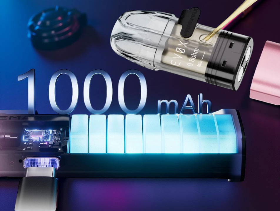 The FreeMax EVOX combines a high-capacity 1000mAh battery and rapid USB-C charging with a simplified side-fill system, engineered for a mess-free experience and long vaping times.