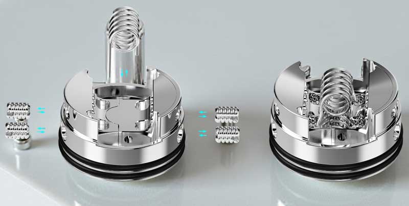 - Postless Single Coil Deck: The intuitive postless build deck simplifies the coil installation process, allowing the user to easily clip their coil legs after securing them for a hassle free experience.