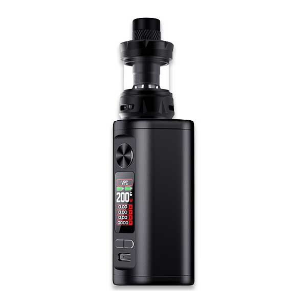 The kit includes the TLC Tank that matches the mod’s color for a uniform appearance. This atomizer can store up to 6.5mL of vape juice in a bubble glass or 5mL in a straight glass. And there’s an effortless top-fill method that involves twisting the top cap with a 1/4 turn to expose dual juice ports.