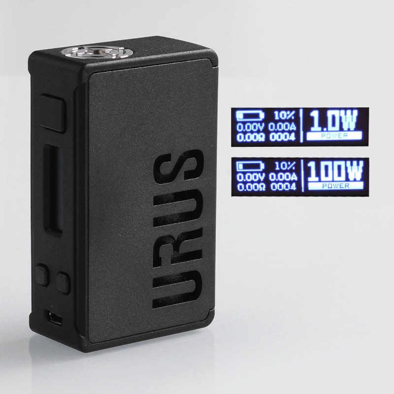 Under the hood, the URUS Mod is quite capable because it can function in a versatile range of operating modes that include power, bypass, preheat, VTC and temperature control with nickel, stainless steel and titanium. The power can reach 100 watts and the resistance bottoms at 0.06ohm ensuring it will work with many tanks/builds currently in stores.