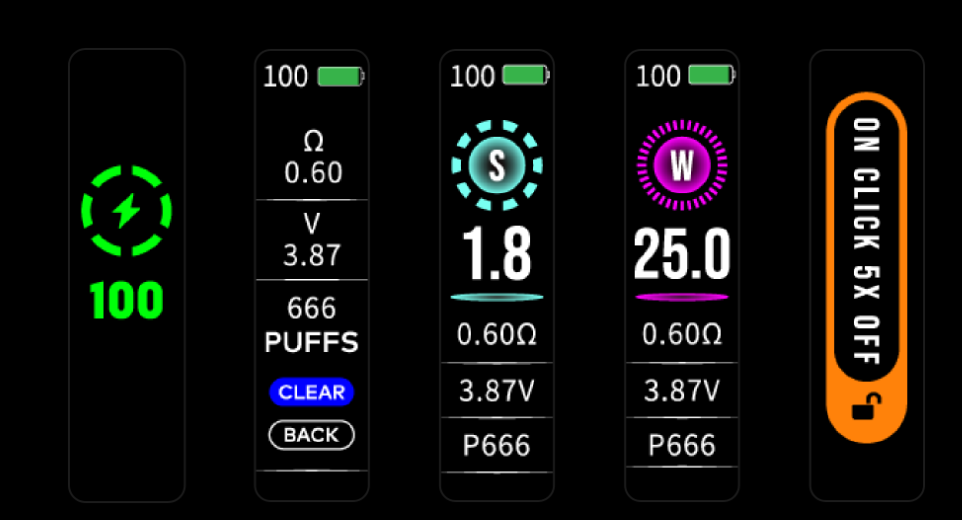 - Intuitive Color Display: Equipped with a clear 0.99″ TFT Color Screen to easily monitor essential data like puff count, wattage, and battery status.