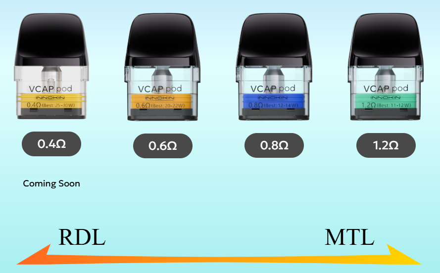 - Versatile Puff Styles: Supports the full range of Vcap pods (0.6Ω, 0.8Ω, 1.2Ω options) catering seamlessly to both tight mouth-to-lung  and looser restricted direct-to-lung  draws.