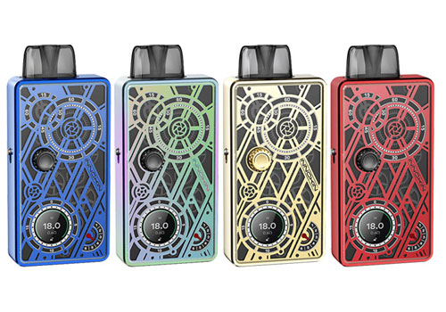 This kit features a 900mAh integrated battery, up to 18 watts of variable power, a 2mL pod, an OLED screen, and an effortless USB recharge system.