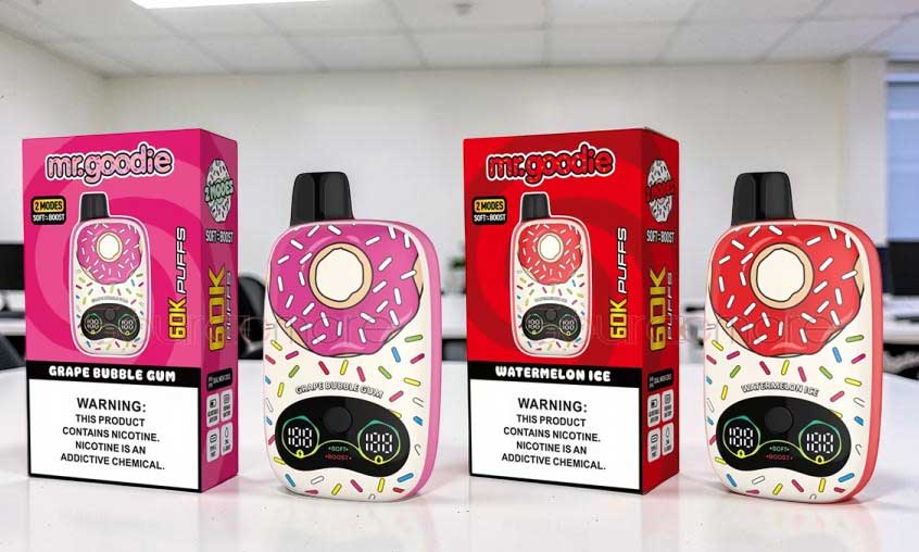 Experience the ultimate flavor duo with Grape Bubble Gum and Watermelon Ice Mr.Goodie Donut 60K, featuring a dual-mode system that lets you boost intensity instantly. This high-capacity hardware keeps you in control with a real-time smart screen for monitoring juice levels and adjustable airflow to perfectly tailor every hit to your preference.