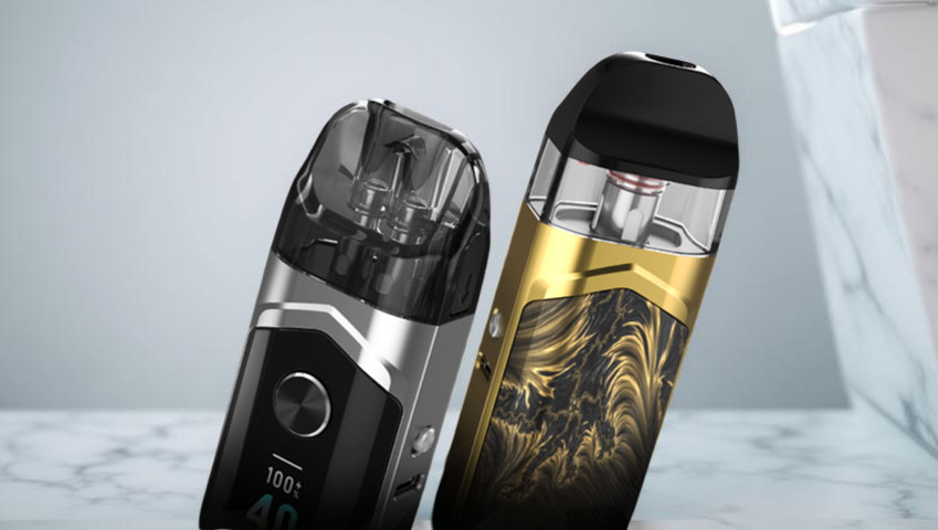 The kit includes two separate pods: a side-filled pod with an integrated 0.4ohm Dual Core Dual Meshed coil for consistent flavor, and a top-fill pod compatible with the upgraded 0.15ohm RPM 3 mesh coil for massive vapor production.