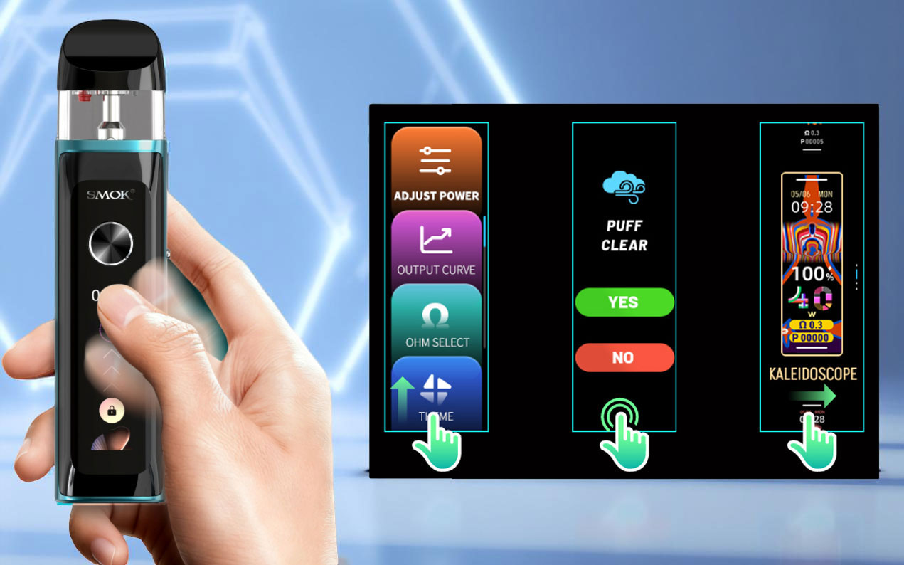 Intuitive Control: The Smok Novo 6 Ultra redefines the pod experience with a high-responsiveness touch screen designed for effortless navigation. With a simple swipe up, you gain instant access to precision power tuning and the three distinct output curves, while swiping side-to-side allows you to personalize your device with the Kaleidoscope animation suite.