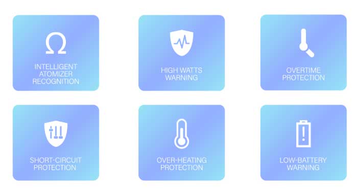 Minimum Atomizer Resistance: 0.1 ohm in VW Mode – Provides a broad working range, supporting almost every commercially available sub-ohm tank and rebuildable atomizer.