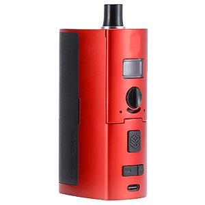 This kit stands apart from the crowd because it is compatible with 21700/18650 or 20700 batteries, rechargeable via a USB-C port and an included cable. Settings include power, voltage, three temperature control, and bypass modes. And the mod has a wattage range of 1 to 100 watts, easily adjusted with a small rotating wheel and multiple safety features.