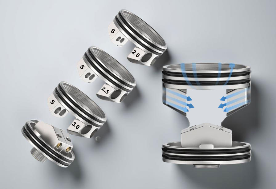 Three-Chamber Single Airflow System (2.0mm/2.5mm/3.0mm): Customizes your draw from restricted to wide-open while directing air straight to the coil to eliminate “dead air” and turbulence.