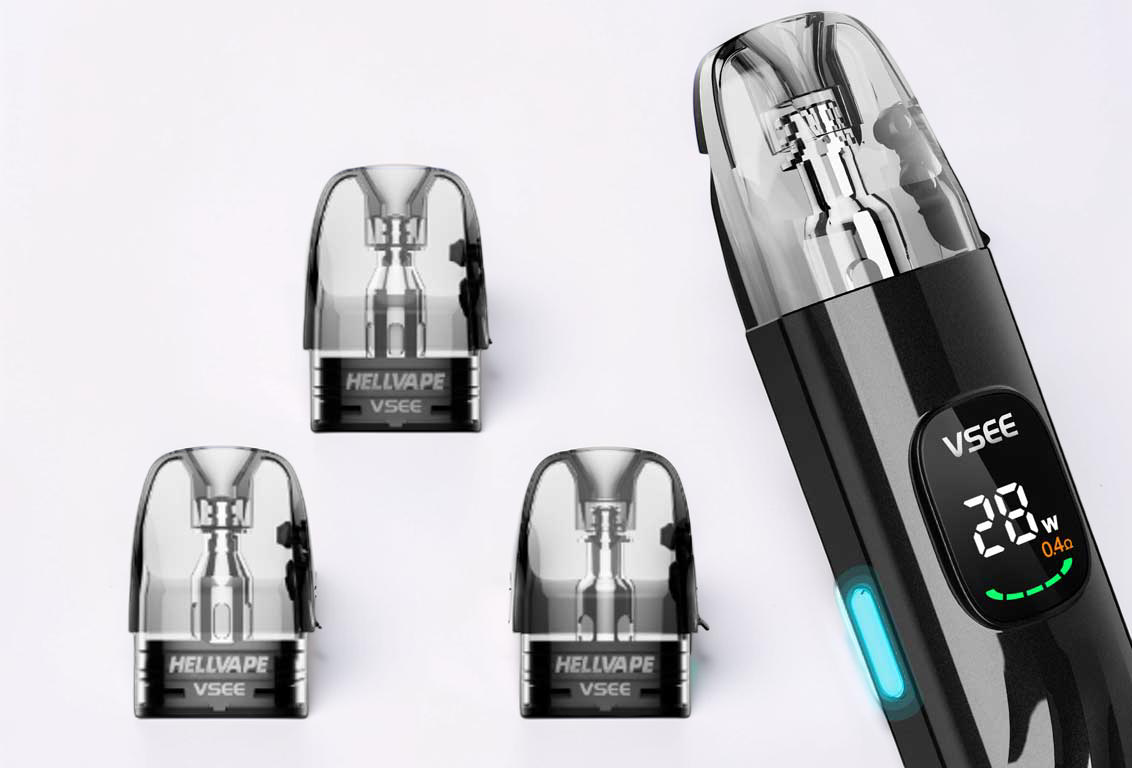 The Hellvape VSEE One Kit utilizes proprietary pods designed specifically for its slim, zinc-alloy chassis. To ensure proper connectivity, users must look for the side-mounted airflow slider and the signature 4-circle LED battery indicator, which are unique physical traits of this kit.
