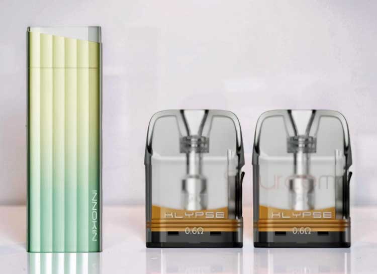 The Innokin Klypse Plus Pod Kit utilizes a cross-compatible cartridge system that is instantly identifiable by its signature dust-proof magnetic cap that snaps onto the top of the pod. To make sure you have the correct integrated mesh cartridge is vital to maintaining the sleek, buttonless profile of this pocket-friendly device.