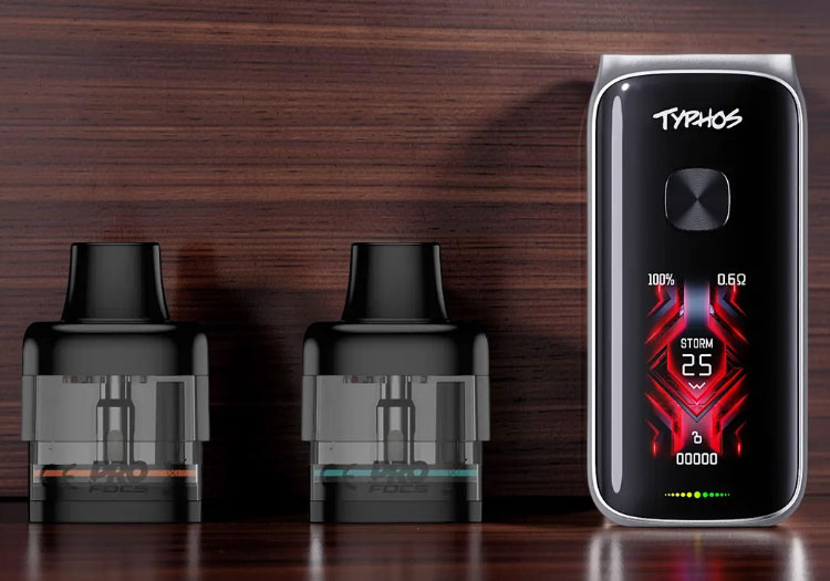 Typhos Pro Pod (0.3Ω Dual Mesh): Maximum Vapor Production & DTL, 6ml Capacity, 35W–45W.