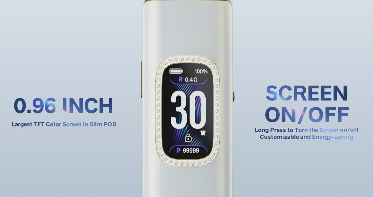 - Display: 0.96-inch TFT Color Screen. One of the largest and most vibrant displays in its class, instantly relaying crucial data like wattage, battery life, and puff count in a clean, legible format.