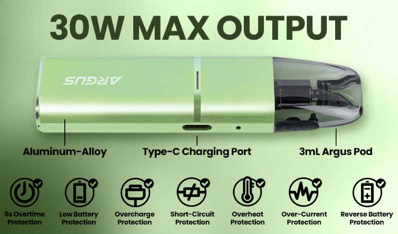 - Max 30W Power Output: Automatically matches the best power level to the inserted pod resistance (0.4Ω, 0.7Ω, 1.0Ω) to guarantee optimal flavor and vapor output every time.