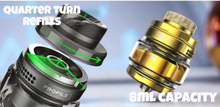 The Profile X is the perfect choice for you if you seek a powerful, large-capacity RTA that offers supreme flexibility in your build options without ever compromising on leak-free reliability or intense flavor delivery.